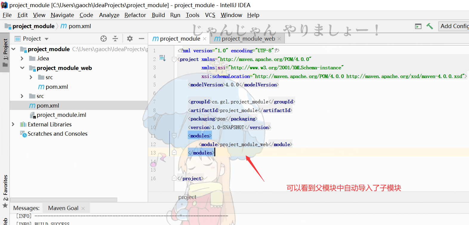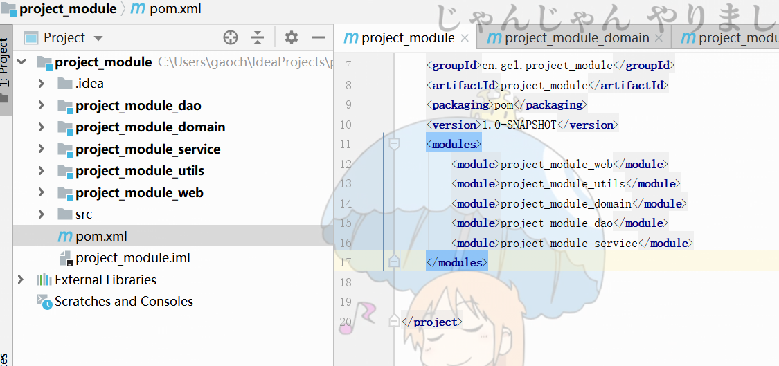 这里只截了project_module_web的图,其余的模块创建都与父模块相同。