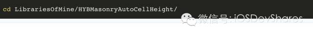 1、第一步:打开终端并进入到工程的目录。这里是我所开源的一个HYBMasonryAutoCellHeight开源库,用于自动计算cell的高度。