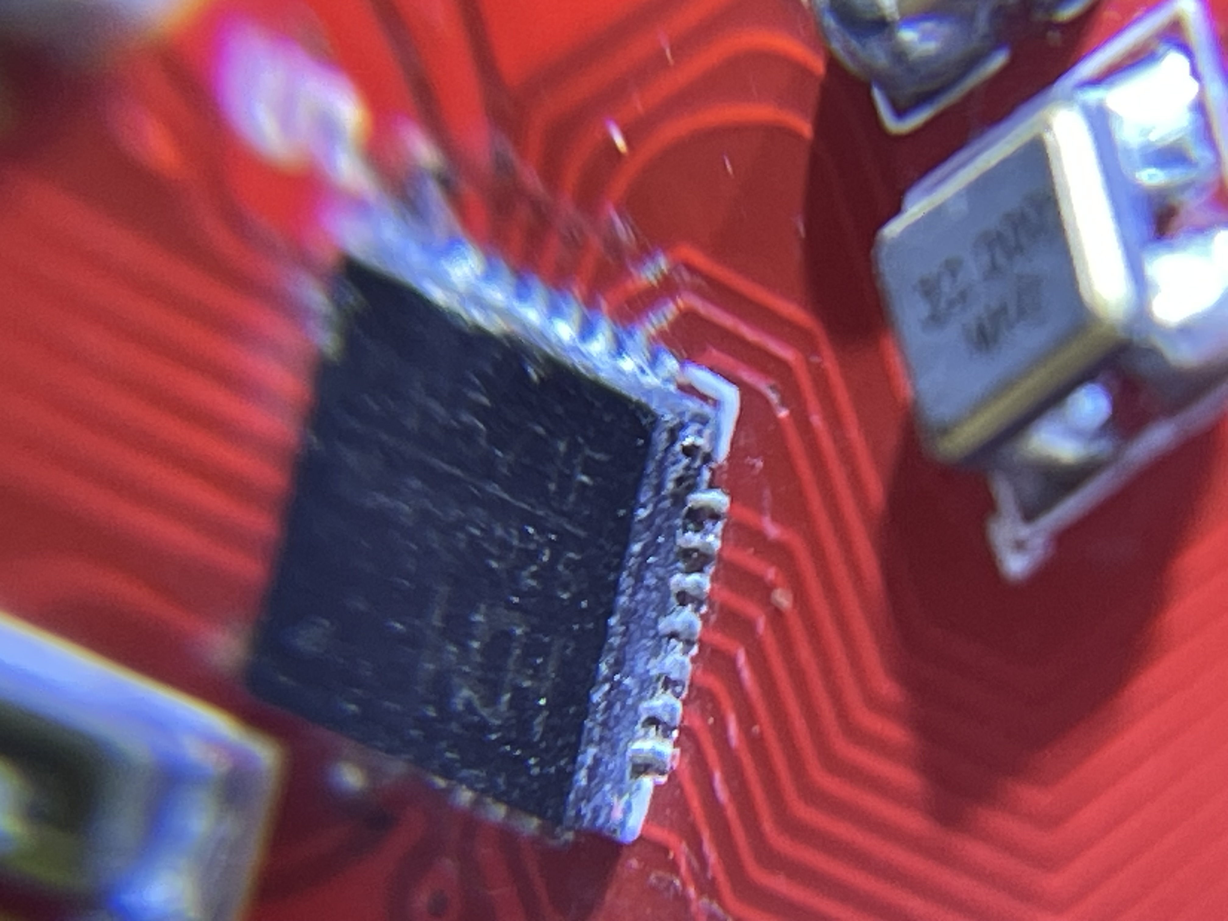 后来,我用了第二种方案去焊接QFN封装的元件,先把整个封装的焊盘涂上低温锡浆,注意尽可能均匀且把握好用量。然后等加热台到预设温度,放上去加热到锡浆变色,再放芯片,依靠融化后的锡浆张力,用镊子轻推芯片,即可完美定位,如果底部有多余的锡浆,轻轻按压就出来了,最后冷却,按第一步处理多余的焊锡和连锡问题。如果细心,成功率还是很高的!