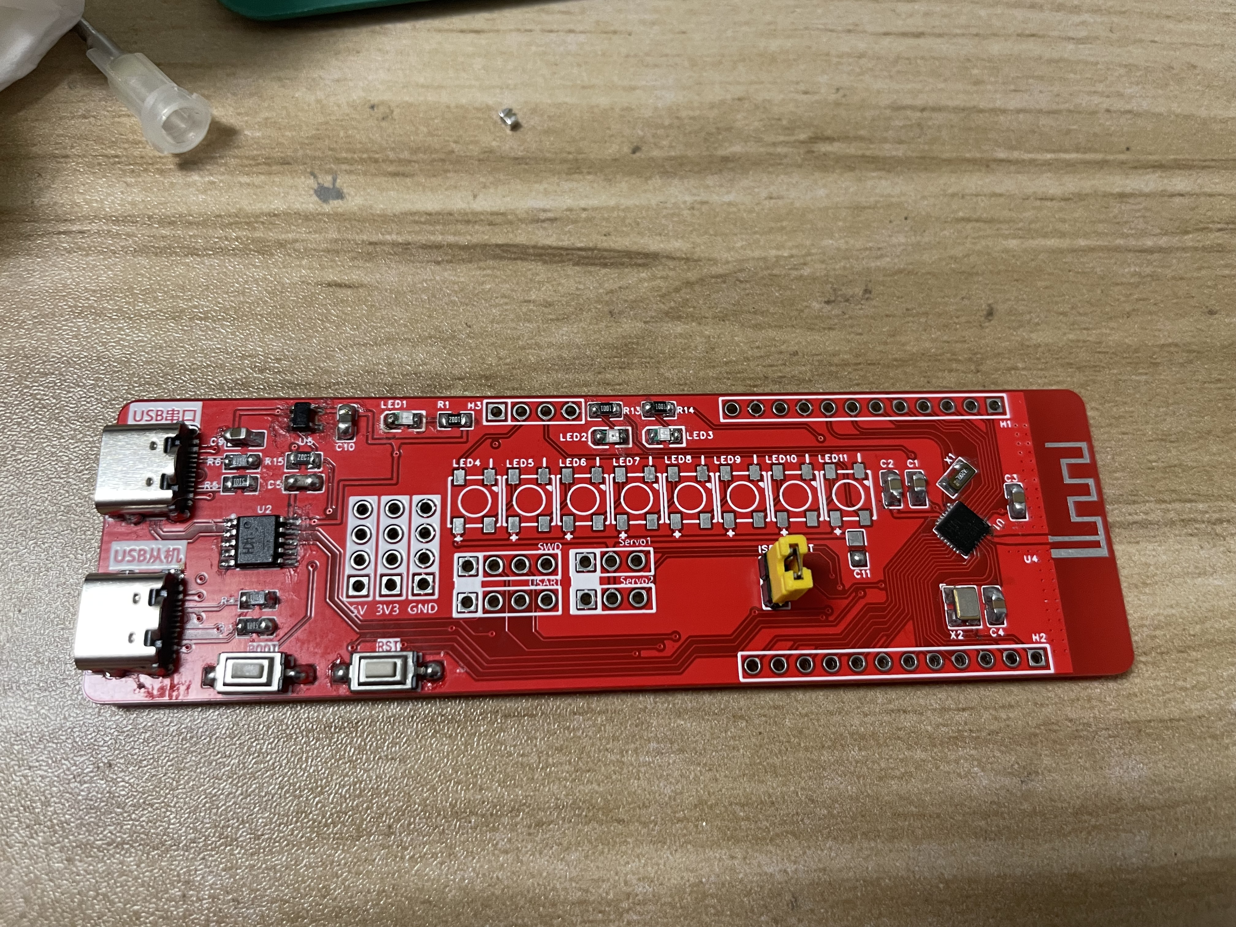 Type-C的焊接类似,也是先拖焊,焊油去连锡。对了最后还得备点洗板水,板子上都是焊油,我先用抽纸吸了吸,但还是油乎乎的,不好看,准备先用酒精洗洗;我那个镊子不知道为啥总是沾小的元件,特别烦!