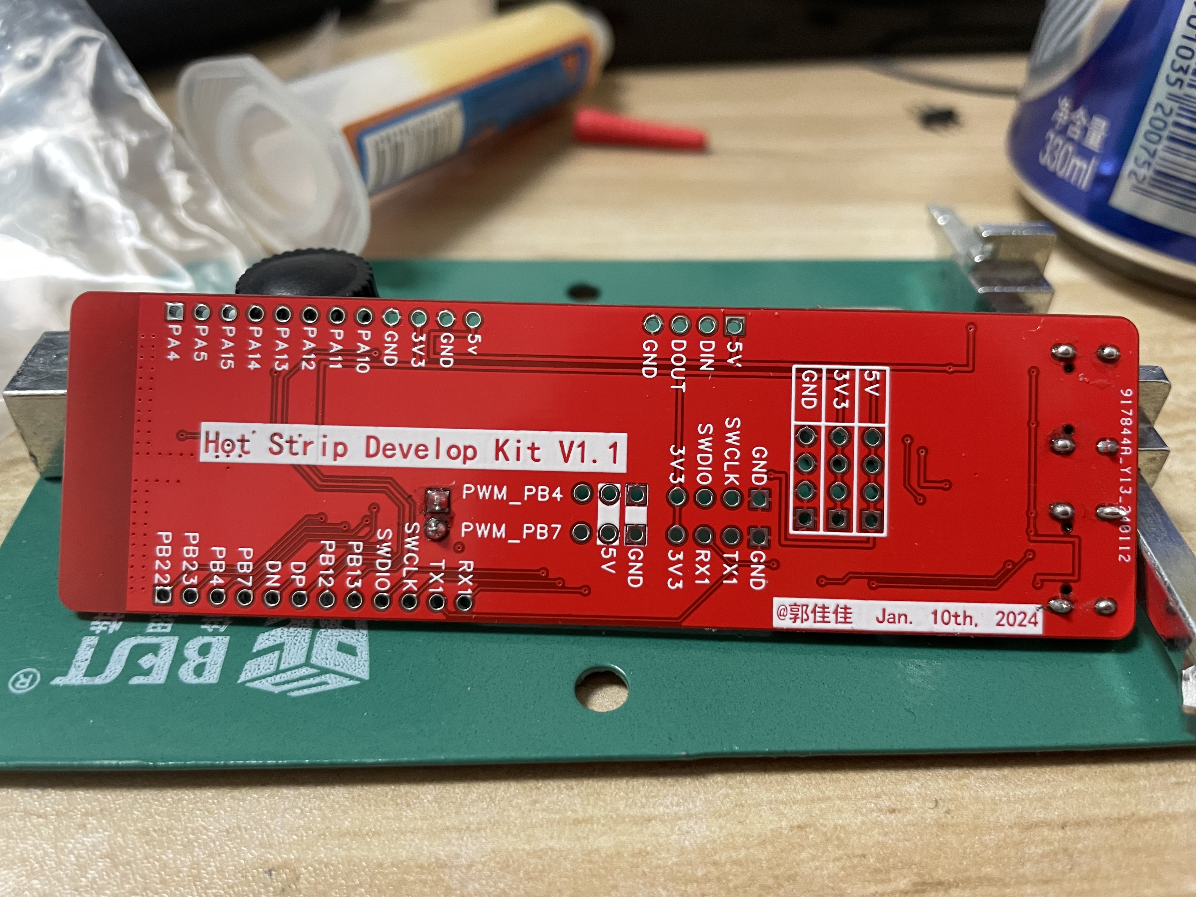 这次焊接主要用的耗材和工具有:低温锡浆、助焊油、有铅锡丝、高倍率带LED灯放大镜、数控加热台、936焊台灯,用的是小刀头烙铁,焊台温度设置320℃、数控加热台设置190℃。