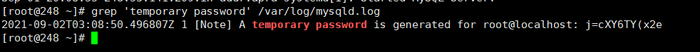 grep 'temporary password' /var/log/mysqld.log