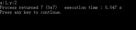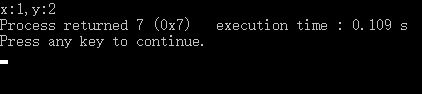 #include <stdio.h> struct Point{ int x; int y; }; void main(){ struct Point point; point.x=1; point.y=2; printf("x:%d,y:%d",point.x,point.y); }