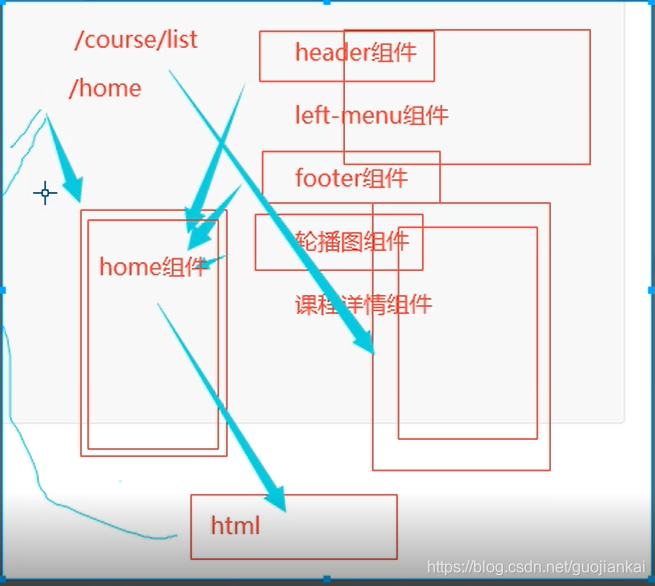 };let Course = { data(){ return{} }, template:` <div class="course"> <h1>course页面</h1> </div>`, }; let router = new VueRouter({ mode:'history', routes:[ {path:'/home',component:Home}, //vue-router中router-view跳转的路径, {path:'/course',component:Course} ] }); let vm = new Vue({ el:"#app", //挂载vue-router规则 router, data(){ return{} }, })</script>