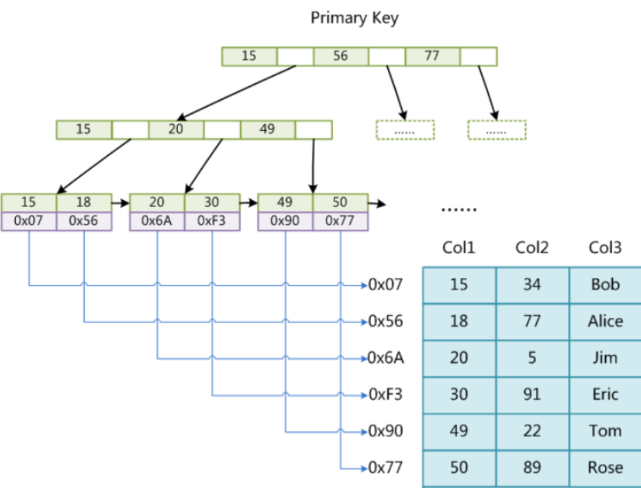 InnoDB的数据文件本身就是索引文件。从上文知道,MyISAM索引文件和数据文件是分离的,索引文件仅保存数据记录的地址。而在InnoDB中,表数据文件本身就是按B+Tree组织的一个索引结构,这棵树的叶节点data域保存了完整的数据记录。这个索引的key是数据表的主键,因此InnoDB表数据文件本身就是主索引。这种结构被称为聚簇索引。