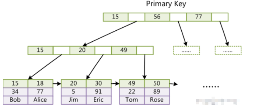 4、B+树全节点遍历更快:B+树遍历整棵树只需要遍历所有的叶子节点即可,,而不需要像B树一样需要对每一层进行遍历,这有利于数据库做全表扫描。