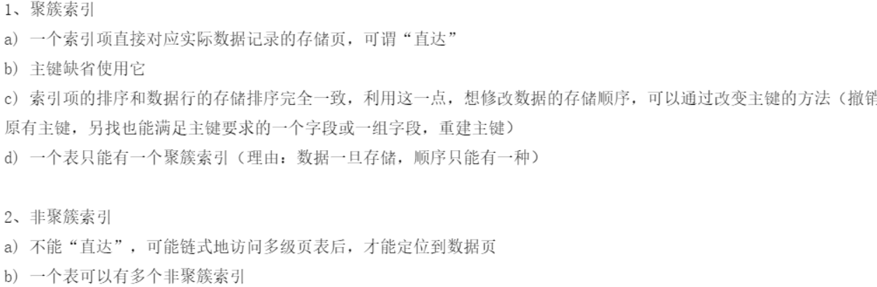 聚簇索引的叶子节点就是数据节点,而非聚簇索引的叶子节点仍然是索引节点,只不过有指向对应数据块的指针。