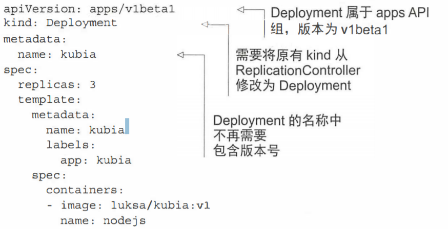 $ kubect1 create -f kubia-deployment-v1.yaml --record