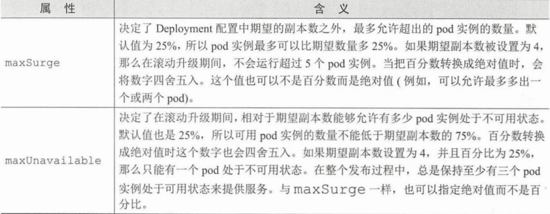 滚动升级策略的 maxSurge 和 maxUnavailable 属性 决定一次替换多少个 pod