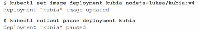 $ kubetl set image deployment kubia nodejs=luksa/kubia:v3
