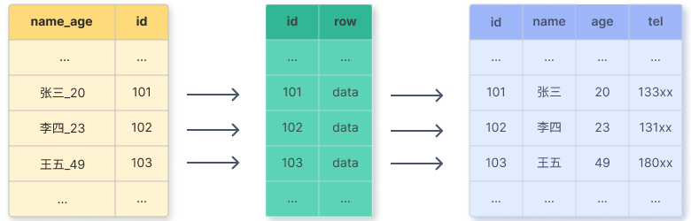 - 如果就是 age 字段不在这个联合索引里, 那么匹配到 name = 张三之后, 拿到主键 id 回表拿到整行 data, 取到 data 里的 age 字段, 如果符合条件则获取数据, 不符合条件则丢弃, 对比我们建的联合索引, 就可以少比较很多次, 因为在二级索引上, 我们就已经比对完成了, 再次回表只是获取我们需要的数据, 如果改写成