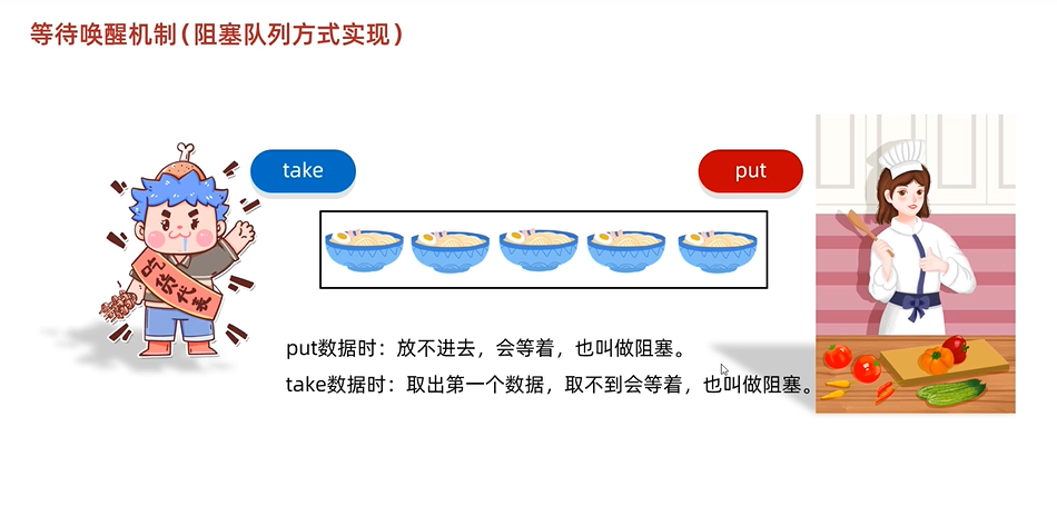 queue.put("面条");//不需要写锁了,因为 put() 方法的底层有锁