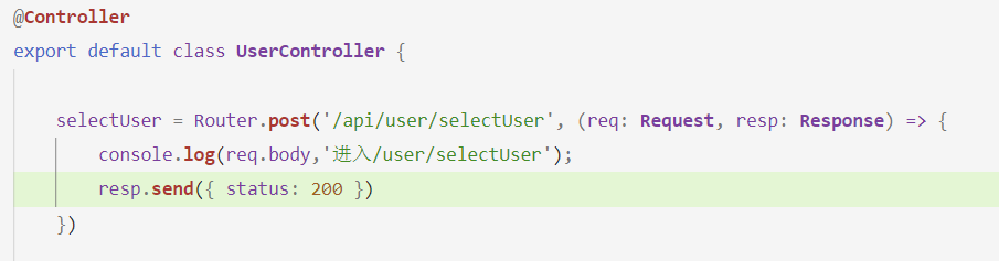 2)第二步就是利用typescript写一个@controller装饰器放在路由类上,装饰器的功能很简单,就是获取到类对象中的路由