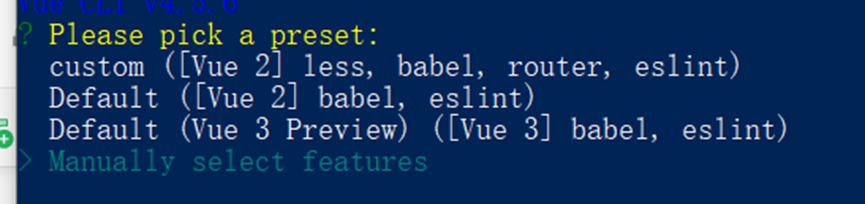选择预置的内容,最后一个代表手动配置