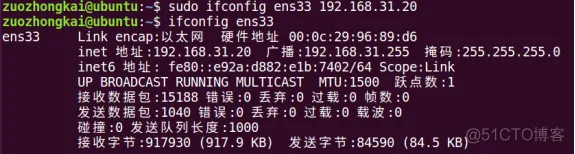 将网卡ens33的IP地址改为192.168.31.20