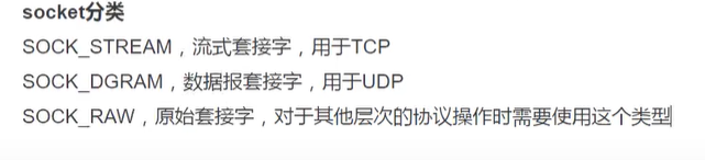 int socket(int family,int type,int protocol); 功能: 创建一个用于网络通信的socket套接字(描述符) 参数: family:协议族(AF_INET、AF_INET6、PF_PACKET等) //流式套接字 用于TCP通信 /报式套接字 用于UDP通信 type:套接字类(SOCK_STREAM、SOCK_DGRAM、SOCK_RAW等) protocol:协议类别(0、IPPROTO_TCP、IPPROTO_UDP等) /0自动指定协议