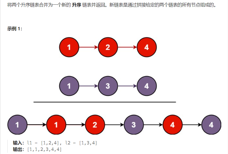 ListNode* mergeTwoLists(ListNode* list1, ListNode* list2) { if(list1==NULL) { return list2; } if(list2==NULL) { return list1; } ListNode* node=new ListNode(0); ListNode* tmp=node; while(list1!=NULL && list2!=NULL) { if(list1->val >= list2->val) { tmp->next=list2; list2=list2->next; } else { tmp->next=list1; list1=list1->next; } tmp=tmp->next; }