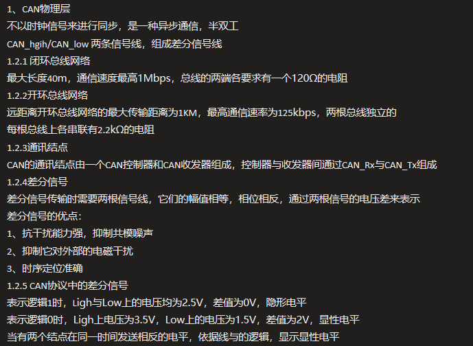 仲裁段:当有两个及以上的报文同时发送时,仲裁段依据线与逻辑进行仲裁,决定谁的优先级更高