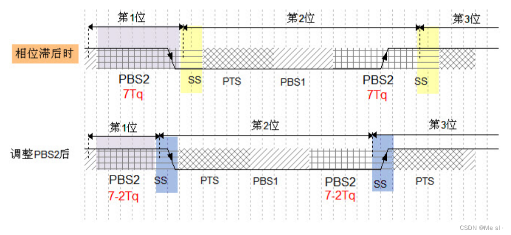 SS段上,如果不在说明内部时序与总线不同步,节点就会将位时序中的SS段平移到下降沿的位置,来实现同步