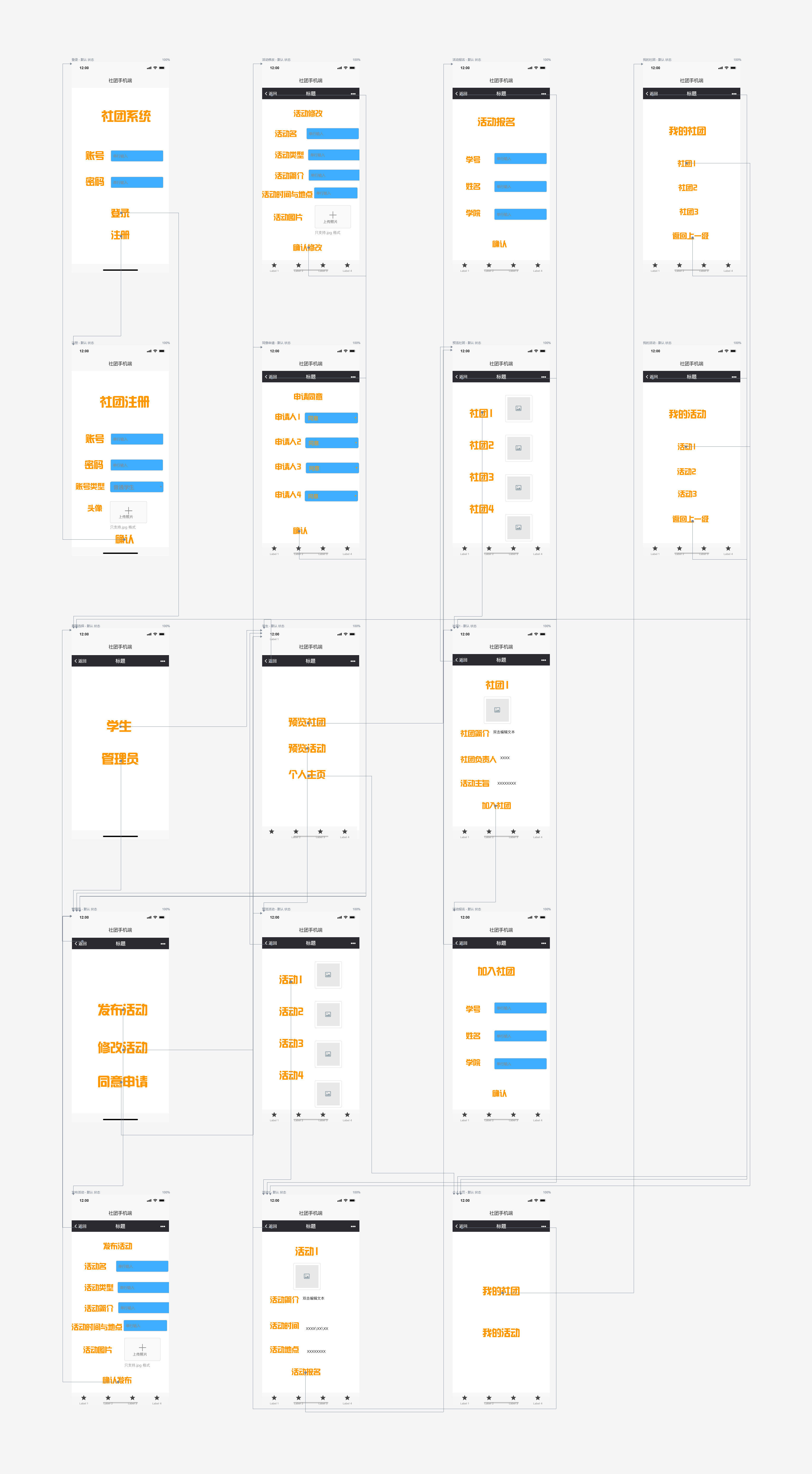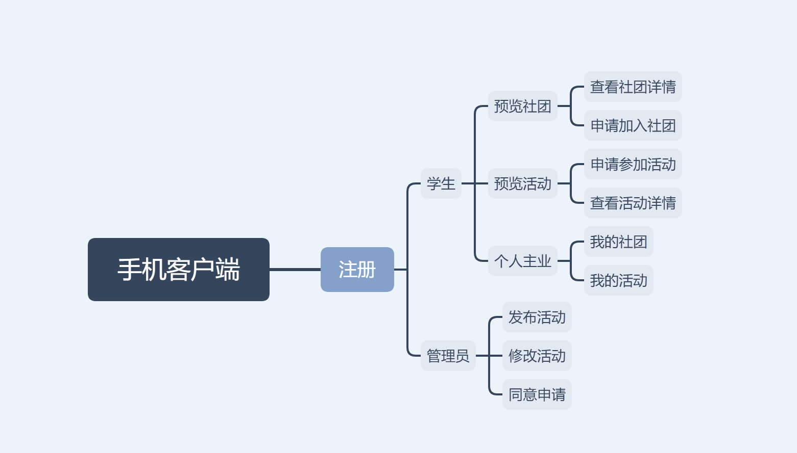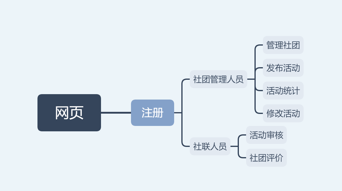 因此,我们希望能打造一款软件连接学生、社团和社联,根据用户不同的使用需求,我们计划给将社团展示、活动报名等功能放在手机小程序端,在社团管理的大部分功能放在网页端。