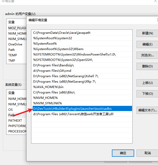配置环境变量path添加adb路径