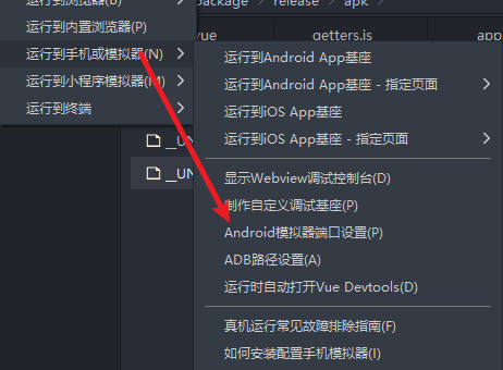 设置adb路径及模拟器端口,随后点击运行到模拟器