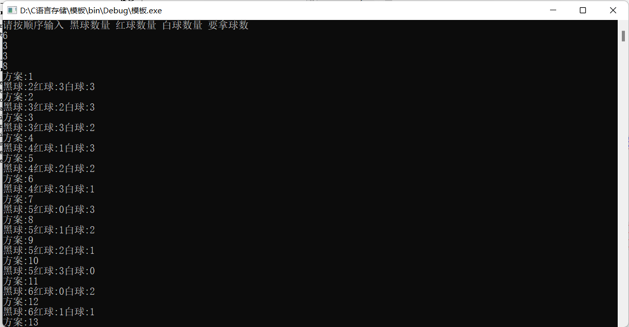 为原题扩展 输入三种球的数量 并输入要拿出多少球 输出所有方案.