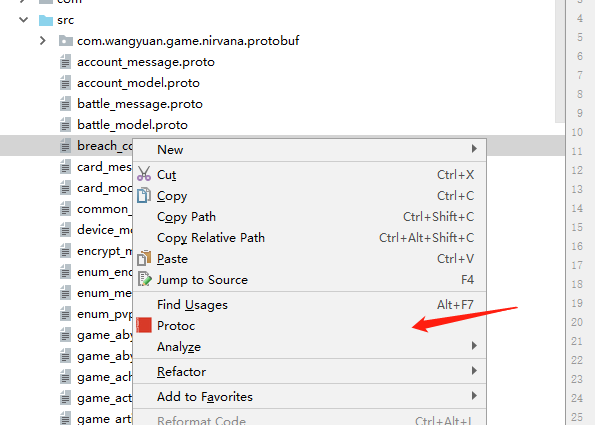 装好插件后 只需要 设置路径 就可以在proto 文件上 右键 点击 protoc 就可以转为 java 文件了