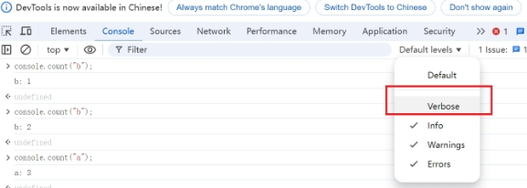 console.countReset("a"); //重置计数