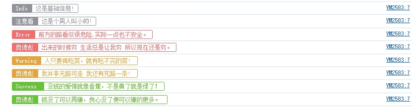log.success('奥德彪', '钱没了可以再赚,良心没了便可以赚的更多。 ');