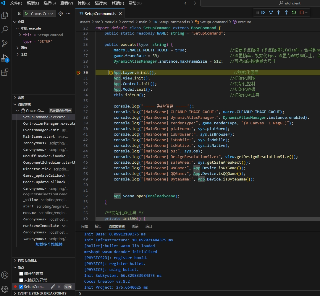 虽然可以在vscode中断点调试,但是一般不用,基本都是在chrome里调试,因为可以对着游戏画面调试。