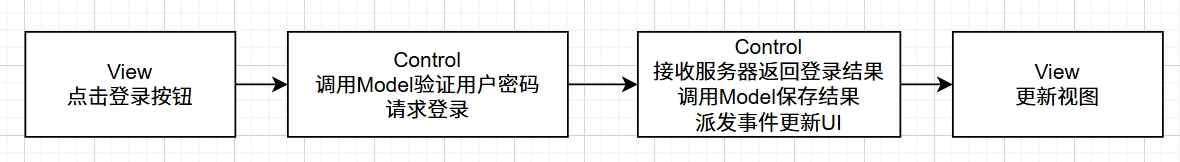 和MVC对比,没有了control层, View里直接调用Model获取数据或发送请求,Model派发事件更新UI。
