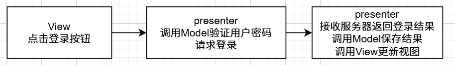 Presenter持有view和model,并调用Model请求登录,更新UI