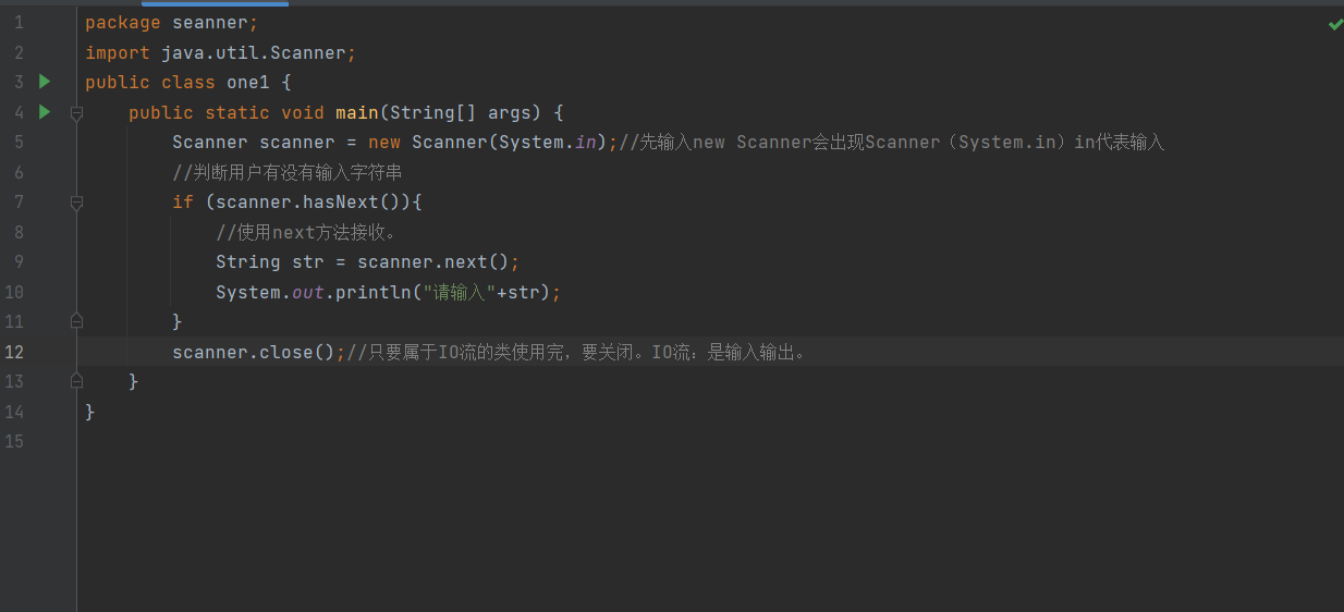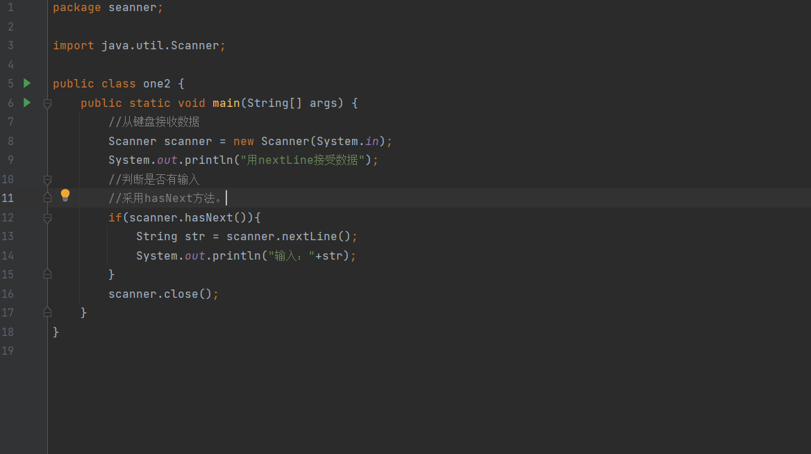 通过scanner类的next和nextLine()方法输入字符串,在读取中我们一般使用hasNext()方法与hasNextLine()判断是否还有输入数据。