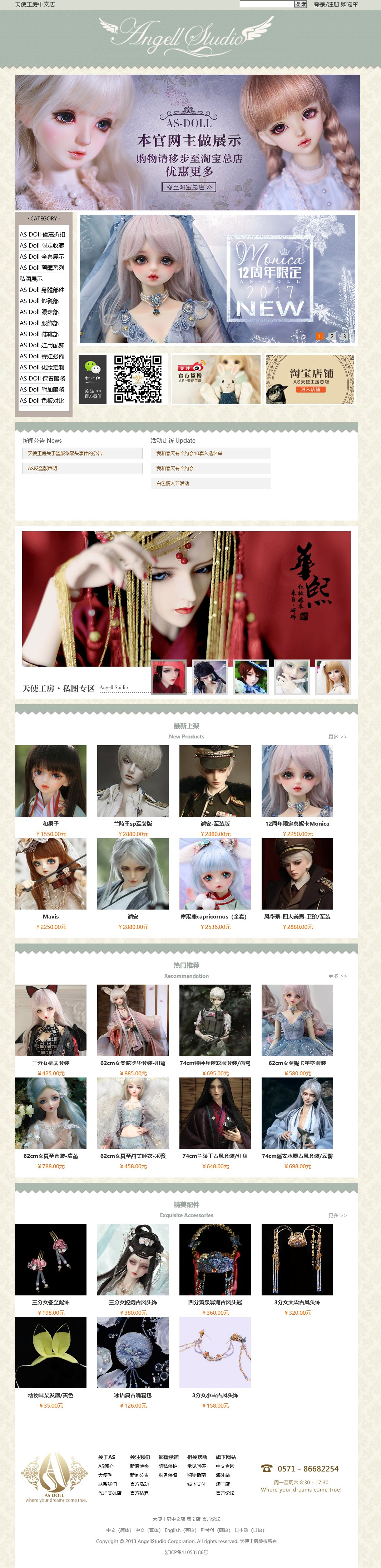 <!DOCTYPE html> <html> <head> <meta charset="utf-8"> <title>天使工房官方店_BJD娃娃网站</title> <link rel="stylesheet" type="text/css" href="css/main.css"> <link rel="stylesheet" type="text/css" href="css/index.css"> <script type="text/javascript" src="js/jquery-3.3.1.min.js"></script> </head> <body> <div class="header"> <div class="head_line"> <div class="head_line_in"> <span class="f_l">天使工房中文店</span> <span class="f_r">登录/注册 购物车</span> <span class="f_r" id="search_box"> <input type="text" class="f_l" value=""> <input type="button" class="f_l" onclick="search()" value="搜 索"> </span> </div> </div> </div> <div class="hd_logos"> <div class="wp"> <div class="logo"></div> </div> </div> <div class="wp mt15 clearfix"> <img src="img/1453071087272266351.jpg"></div> <div class="wp clearfix"> <div class="cate f_l clearfix"> <div class="cate_hd">∙ CATEGORY ∙</div> <div class="cates"> <ul> <li>AS DOll 優惠折扣</li> <li>AS Doll 限定收藏</li> <li>AS Doll 全套展示</li> <li>AS Doll 萌寵系列</li> <li>私圖展示</li> <li>AS Doll 身體部件</li> <li>AS Doll 假髮部</li> <li>AS Doll 眼珠部</li> <li>AS Doll 服飾部</li> <li>AS Doll 鞋靴部</li> <li>AS Doll 娃用配飾</li> <li>AS Doll 養娃必備</li> <li>AS Doll 化妝定制</li> <li>AS DOll 保養服務</li> <li>AS Doll 附加服務</li> <li>AS Doll 色板对比</li> </ul> </div> </div> <div class="play f_r"> <div class="play_mt"> <div id="play_float"> <div class="play_img" style="display: block;"><img src="img/1510354596843195766.jpg"></div> <div class="play_img" style="display: none;"><img src="img/1505503599353307182.jpg"></div> <div class="play_img" style="display: none;"><img src="img/1503015197286360618.jpg"></div> </div> <div class="play_navs"> <span class="on">1</span> <span class="">2</span> <span class="">3</span> </div> </div> </div> <script> $(document).ready(function(){ //焦点图 $('.play_navs span').eq(0).addClass('on'); $('.play_navs span').each(function(i){ $(this).hover(function(){ //没有停止当前动画 clearInterval(timer); play_focus(i); }); $(this).click(function(){ //没有停止当前动画 clearInterval(timer); play_focus(i); }); $(this).mouseleave(function(){ timer = setInterval(autoplay,3000); }); }); }); //自动播放 var timer = setInterval(autoplay,3000); var id_now = 0; function autoplay(){ id_now ++; if(id_now < $('.play_img').length) { play_focus(id_now); }else { play_focus(0); id_now = 0; } } function play_focus(i) { $('.play_navs span').removeClass('on'); $('.play_navs span').eq(i).addClass('on'); $('.play_img').hide(); $('.play_img').eq(i).fadeIn(); } </script> <div class="play_sm f_r"> <div class="p_sm_item"><img src="img/weixin.jpg"></div> <div class="p_sm_item"><img src="img/weibo.jpg"></div> <div class="p_sm_item"><img src="img/taobao.jpg"></div> </div> </div> <div class="wp mt15 notices clearfix"> <div class="line_head"></div> <div class="notice"> <h1>新闻公告 News</h1> <ul> <li>天使工房关于盗版华熙头事件的公告</li> <li>AS反盗版声明</li> </ul> </div> <div class="notice"> <h1>活动更新 Update</h1> <ul> <li>我和春天有个约会10套入选名单</li> <li>我和春天有个约会</li> <li>白色情人节活动</li> </ul> </div> <div class="notice_angells f_r"></div> </div> <div class="wp mt15 clearfix" id="box_areas"> <div class="box_area"> <div class="box_float" id="box_float" style="width: 4600px;"> <div class="box_img"><img src="img/1409512021557265444.jpg"></div> <div class="box_img"><img src="img/1400722101053120602.jpg"></div> <div class="box_img"><img src="img/1400781478344080123.jpg"></div> <div class="box_img"><img src="img/1400721410277044502.jpg"></div> <div class="box_img"><img src="img/1400780684341864199.jpg"></div> </div> </div> <div class="box_logos"> <id="a_to_bbs"> <div class="box_navs"> <a><class="on"><div class="box_nav_item"><class="on"><img src="img/1409685469015957108.jpg"></a></div> <a><div class="box_nav_item"><img src="img/1400722101190685066.jpg"></a></div> <a><div class="box_nav_item"><img src="img/1400781478726277823.jpg"></a></div> <a><div class="box_nav_item"><img src="img/1400721410059643055.jpg"></a></div> <a><div class="box_nav_item"><img src="img/1400781485120721931.jpg"></a></div> </div> </div> </div> <script> $(document).ready(function(){ //私图专区 var len = $('.box_img').length; $('#box_float').css('width',920*len); $('.box_nav_item a').eq(0).addClass('on'); $('.box_nav_item a').each(function(i){ $(this).hover(function(){ $('.box_nav_item a').removeClass('on'); $(this).addClass('on'); var pos = -920 * i + 'px'; $('#box_float').stop(); $('#box_float').animate({left:pos},1000); }); }); }); </script> <div class="wp mt15 clearfix"> <div class="line_head"></div> <div class="line_title"> <h3>最新上架</h3> <h4>New Products</h4> <div class="more">更多 >></div> <div class="line_title clearfix"> <div class="wp_item"> <img src="img/3147_thumb_G_1548635666384.jpg"> <b>和果子</b> <span>¥1550.00元</span> </div><div class="wp_item"> <img src="img/3030_thumb_G_1519840489247.jpg"> <b>兰陵王sp军装版</b> <span>¥2880.00元</span> </div><div class="wp_item"> <img src="img/3029_thumb_G_1519840348014.jpg"> <b>潘安-军装版</b> <span>¥2880.00元</span> </div><div class="wp_item"> <img src="img/2989_thumb_G_1510607996709.jpg"> <b>12周年限定莫妮卡Monica</b> <span>¥2250.00元</span> </div><div class="wp_item"> <img src="img/2976_thumb_G_1506032811407.jpg"> <b><title="Mavis">Mavis</b> <span>¥2250.00元</span> </div><div class="wp_item"> <img src="img/2968_thumb_G_1505501813314.jpg"> <b><title="潘安">潘安</b> <span>¥2880.00元</span> </div><div class="wp_item"> <img src="img/3142_thumb_G_1547679043837.jpg"> <b>摩羯座capricornus(全套)</b> <span>¥2536.00元</span> </div><div class="wp_item"> <img src="img/3124_thumb_G_1543276869441.jpg"> <b>风华录-四大美男-卫玠/军装</b> <span>¥2880.00元</span> </div> </div> </div> </div> <div class="wp mt15 