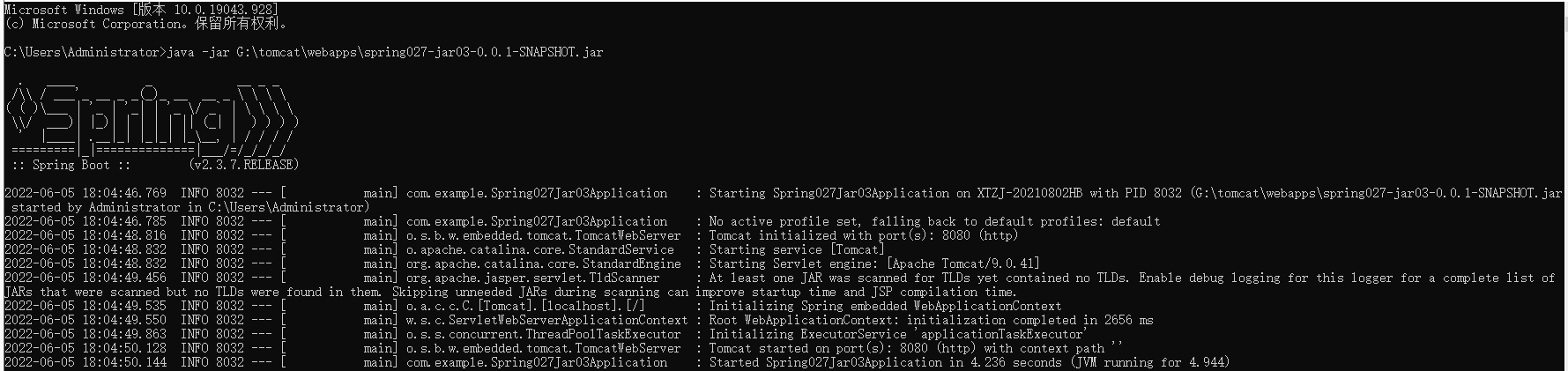 然后,把生成的jar文件拷到需要的目录,打开cmd窗口,运行这个jar文件,就行了,就能在浏览器里访问这个工程了。