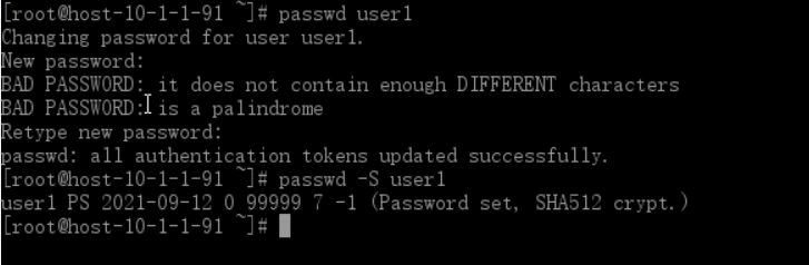 用户修改自己的用户密码可直接键入passwd,若修改其他用户密码需加用户名。超级用户还可以使用如下命令进行用户口令管理: