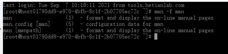 使用 -f 这个选项就可以取得更多与man相关的信息,而上面这个结果当中也有提示了 (数字) 的内容, 举例来说,第二行的『 man (7) 』表示有个man (7)的说明文件存在喔!但是却有个man (1)存在啊! 那当我们下达『 man man 』的时候,到底是找到哪一个说明档呢? 其实,你可以指定不同的文件的,举例来说,上表当中的两个 man 你可以这样将它的文件找出来: