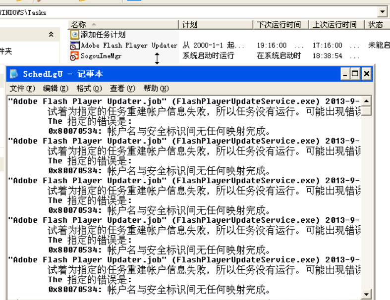 当入侵者得到远程系统的shell之后,常会利用计划任务运行功能更加强大的木马程序,计划任务日志详细的记录的计划任务的执行时间,程序名称等详细信息。