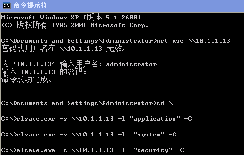 清除目标系统的系统日志输入elsave.exe -s \\对方IP -l "system" -C