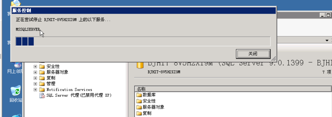 如果通知“SQL Server 代理”服务也将停止时,请单击“是”。