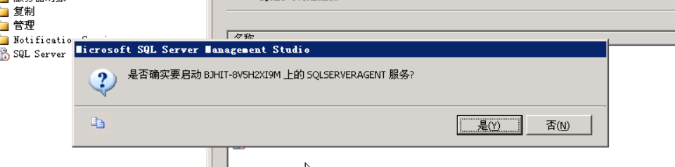 当提示是否确实要启动SQLSERVERAGENT服务时,点击是。