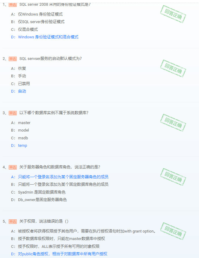 通过这次试验我掌握了管理SQL Server认证模式,数据库登录,数据库用户,数据库角色,数据库权限的方法。