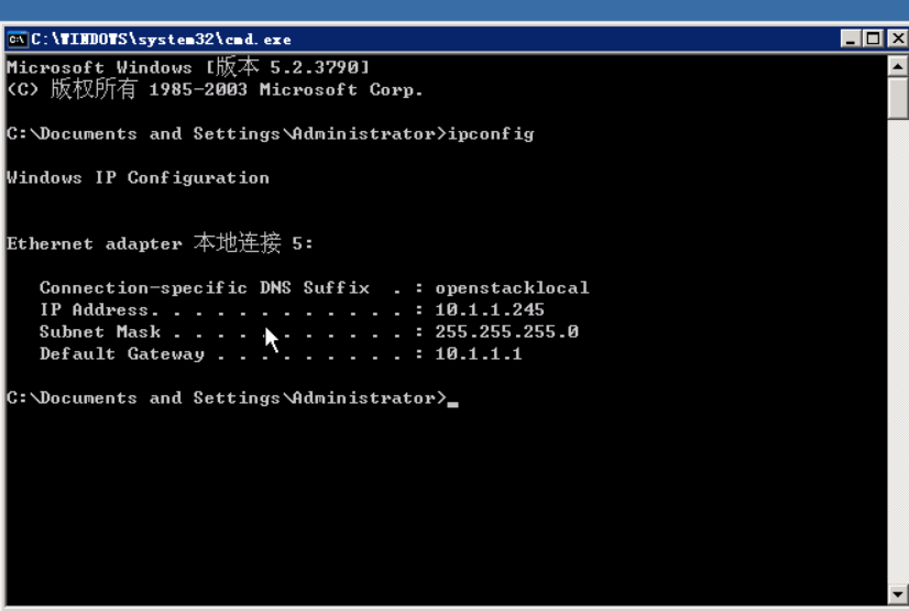 1、远程桌面方式登录到CA服务器,在CMD下查看本机IP地址: