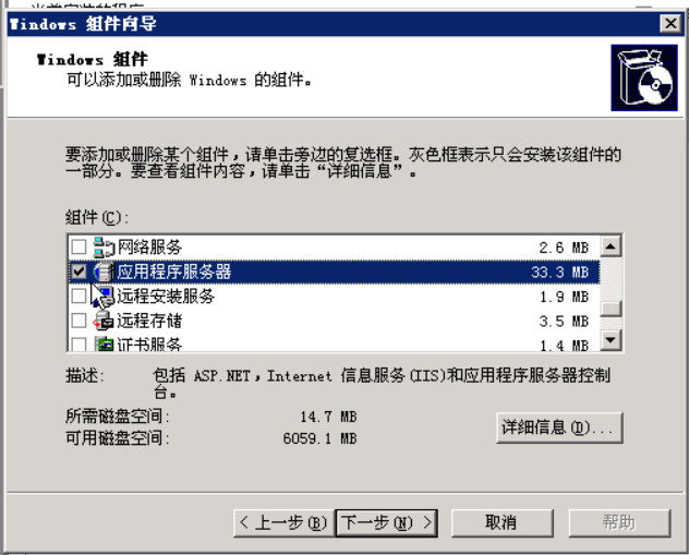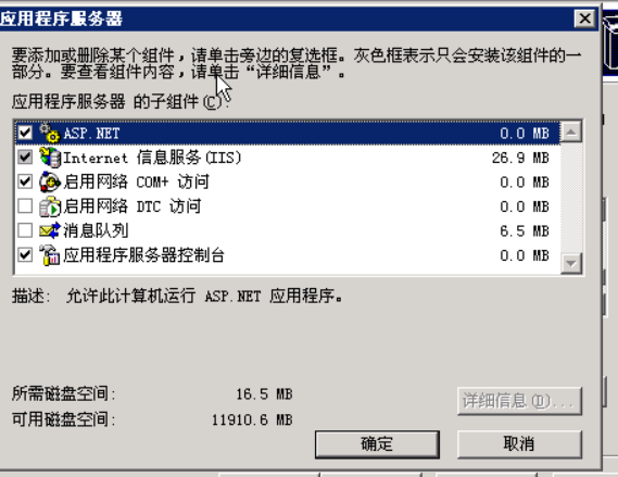 双击“应用程序服务器”,选中“ASP.NET”与“Internet信息服务(IIS)”,如下图: