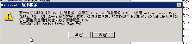 在安装完成后会提示启用Active Server Page,点击“确定”