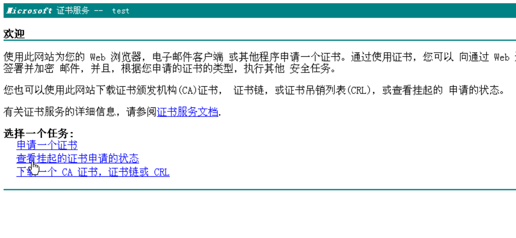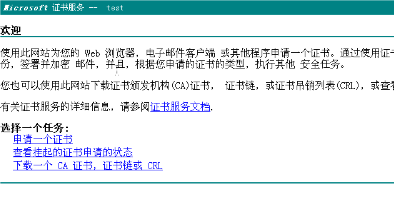 打开浏览器,输入刚才我们搭建的证书服务器地址: