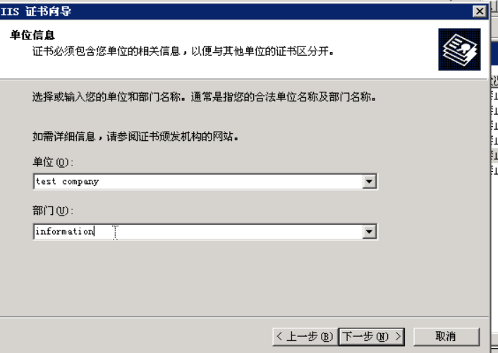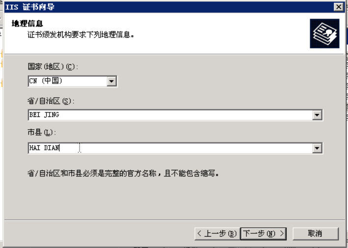 在下一步中输入证书的相关信息: