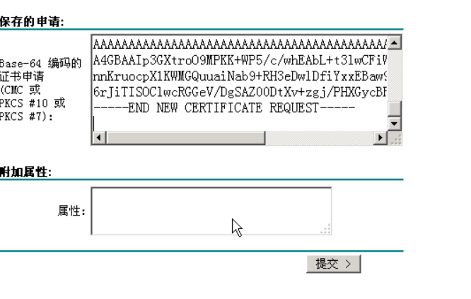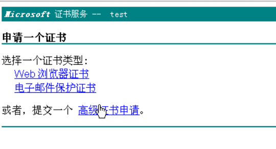 在下图的页面中点击“高级证书申请”: