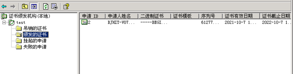 颁发后可以在“颁发的证书”中看到,如下图: